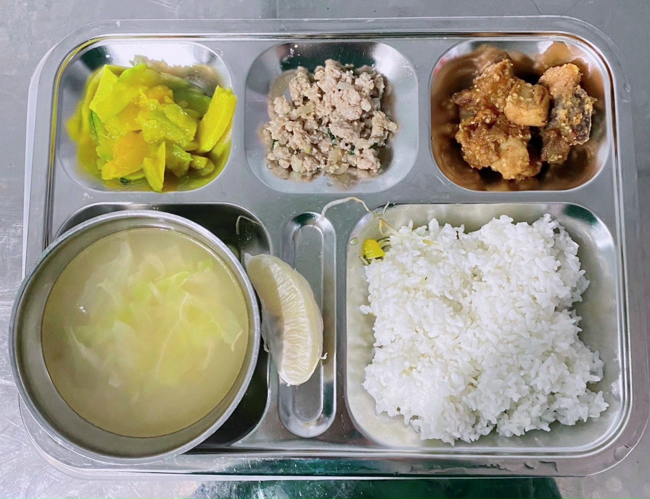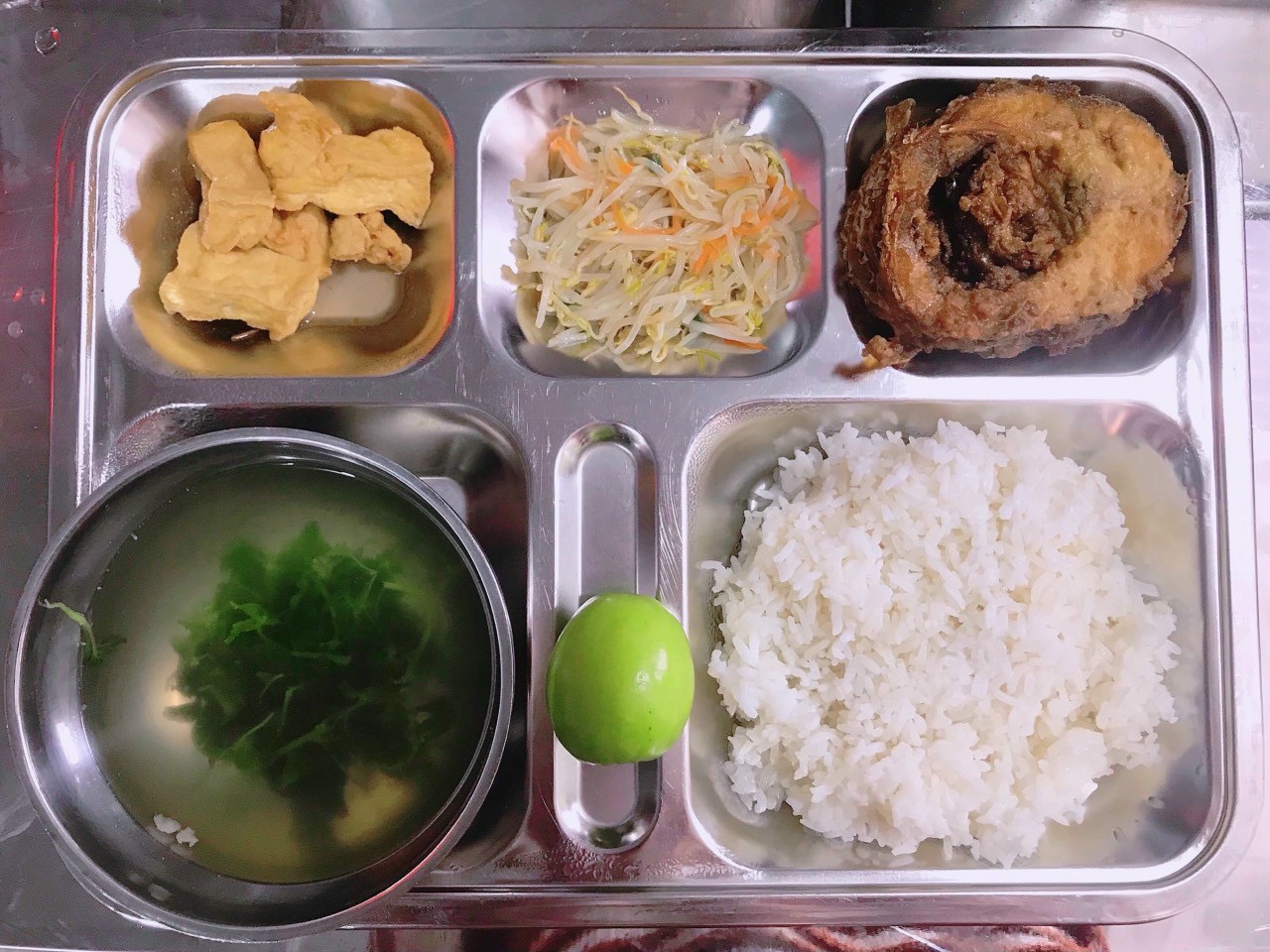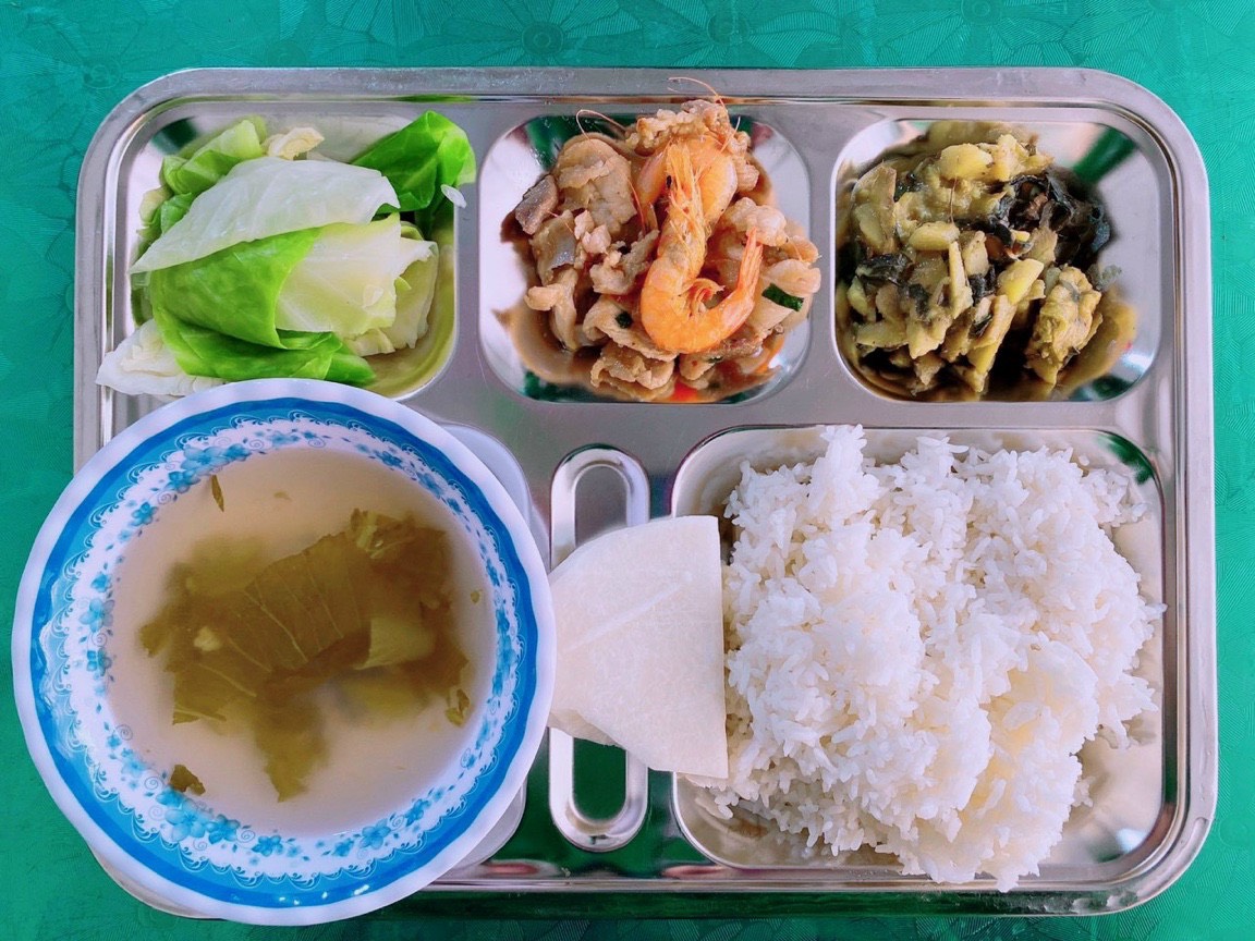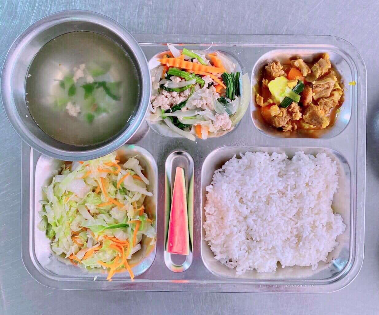 Mỗi bữa ăn chính của học viên gồm bữa trưa – tối gồm có: cơm – 2 món mặn – rau- canh và tráng miệng. Suất ăn có cho mỗi học viên được quy định là 25 nghìn đồng/ người/ bữa. Các món ăn được thay đổi liên tục theo bữa ăn, theo ngày để đảm bảo sức khỏe và học viên có đủ năng lượng trong suốt một ngày học tập.