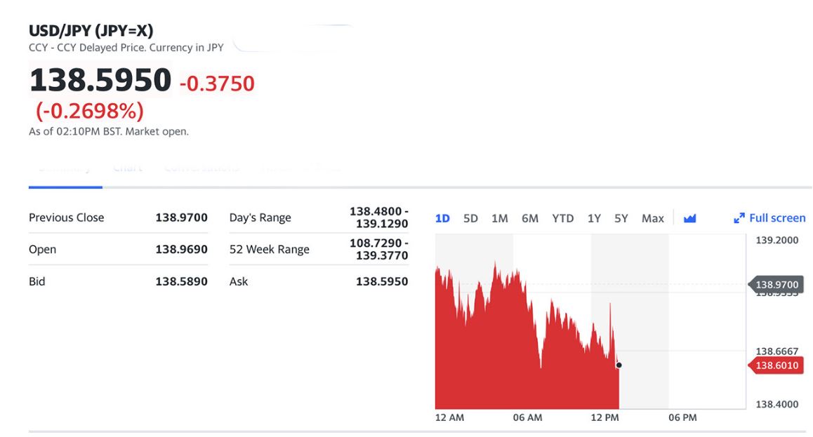 Ngày 14/7, tỷ giá Yen/USD ghi nhận mức thấp nhất trong 24 năm qua, trong bối cảnh Nhật Bản vẫn duy trì chính sách tiền tệ siêu nới lỏng. Tỷ giá giữa hai đồng tiền đã có lúc lên tới 137,99-138 yen/USD, cao nhất kể từ tháng 9/1998.