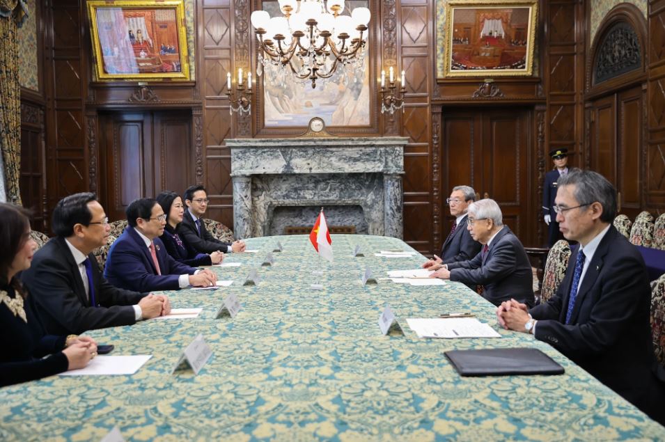 Thủ tướng Chính phủ cảm ơn sự hợp tác và ủng hộ của Hạ viện Nhật Bản đối với sự phát triển của quan hệ Việt Nam – Nhật Bản thời gian qua; cảm ơn sự hỗ trợ của Quốc hội Nhật Bản đối với chính sách đổi mới của Nhật Bản với người lao động nước ngoài trong đó có Việt Nam.
