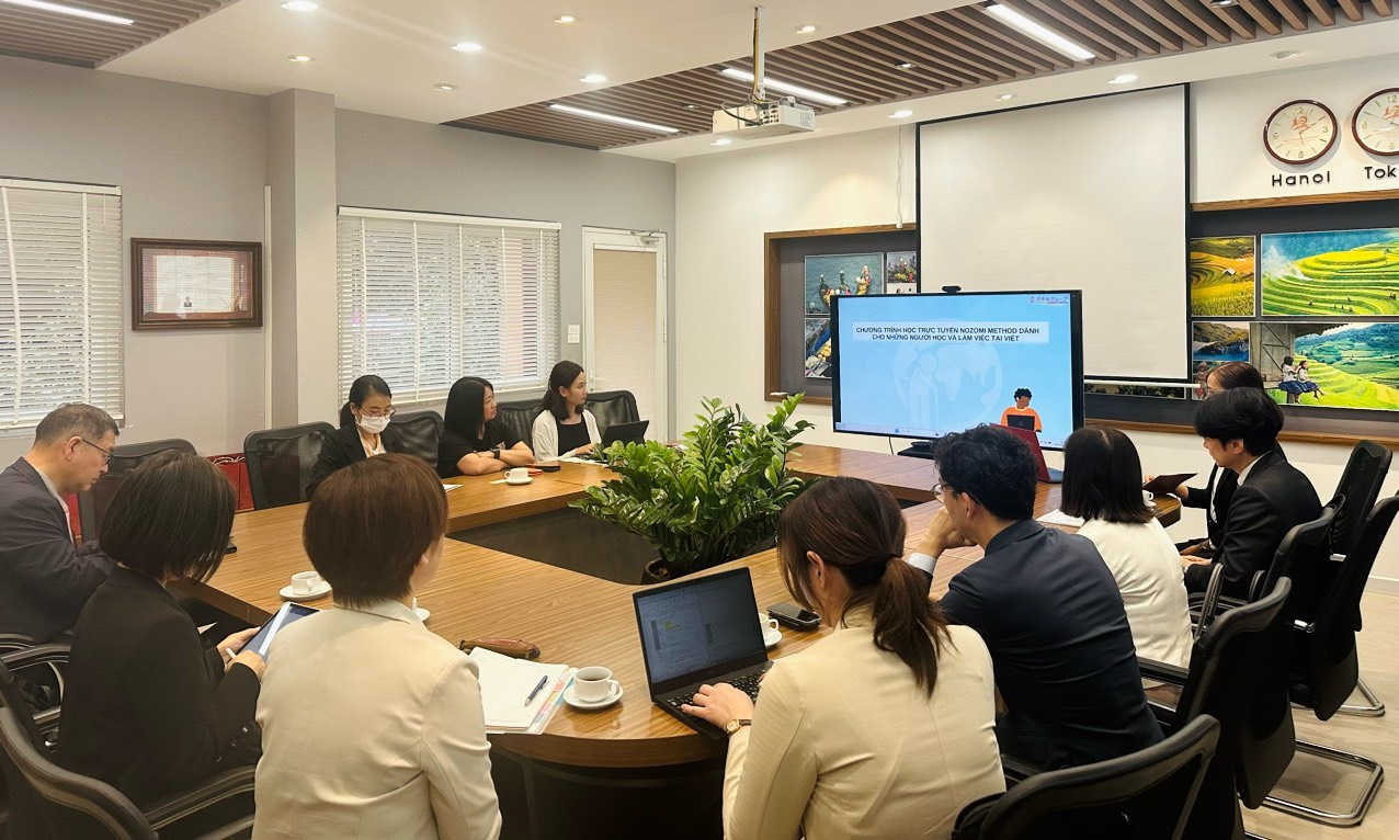 Tại buổi làm việc 2 bên cùng nhau thống nhất chương trình học trực tuyến Nozomi dành cho những người học và làm việc tại Việt. Kể từ khi kí kết hợp tác lần đầu tiên vào tháng 07/2023 về Bản ghi nhớ hợp tác đào tạo nhân lực chất lượng cao trong lĩnh vực chăm sóc người cao tuổi thì đây là lần ghé thăm và làm việc lâu dài của tập đoàn Y tế với doanh nghiệp.