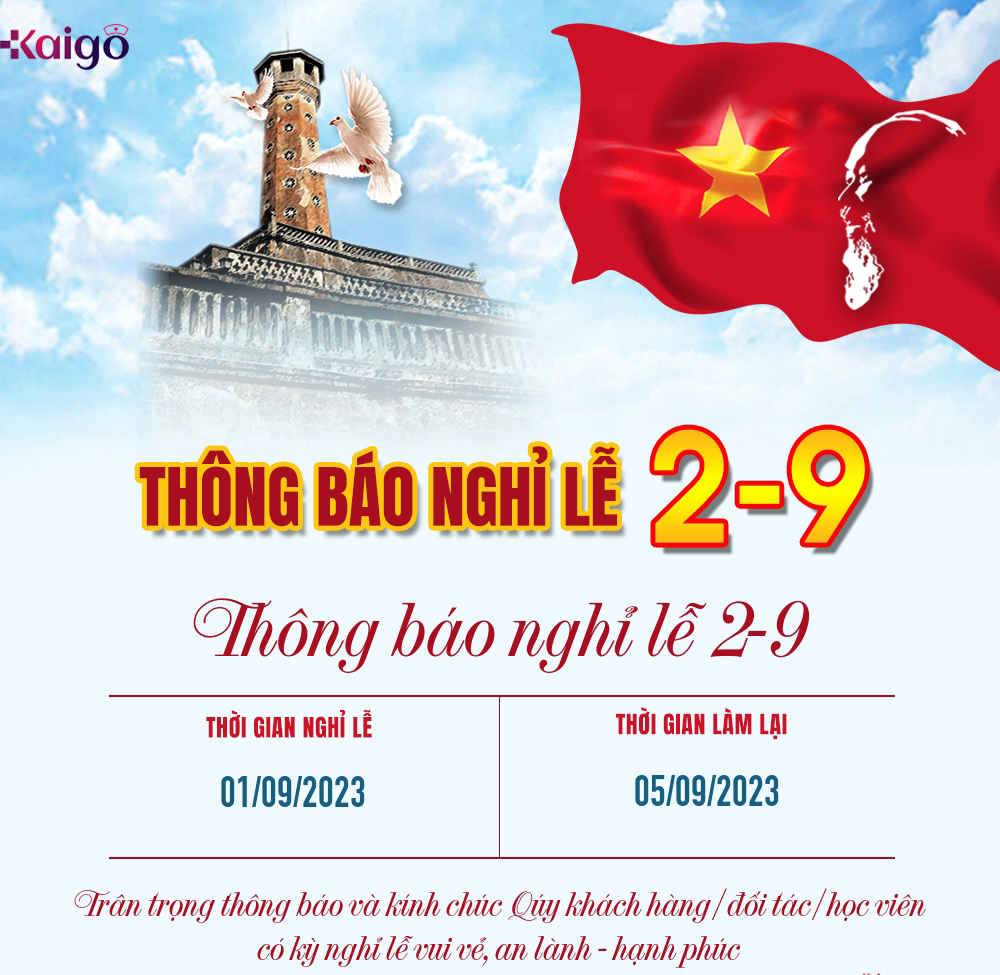 Công ty Cổ phần Kaigo Việt Nam nghỉ lễ trong 4 ngày : Thứ 6 ngày 01/09/2023 – thứ 2 ngày 04/09/2023