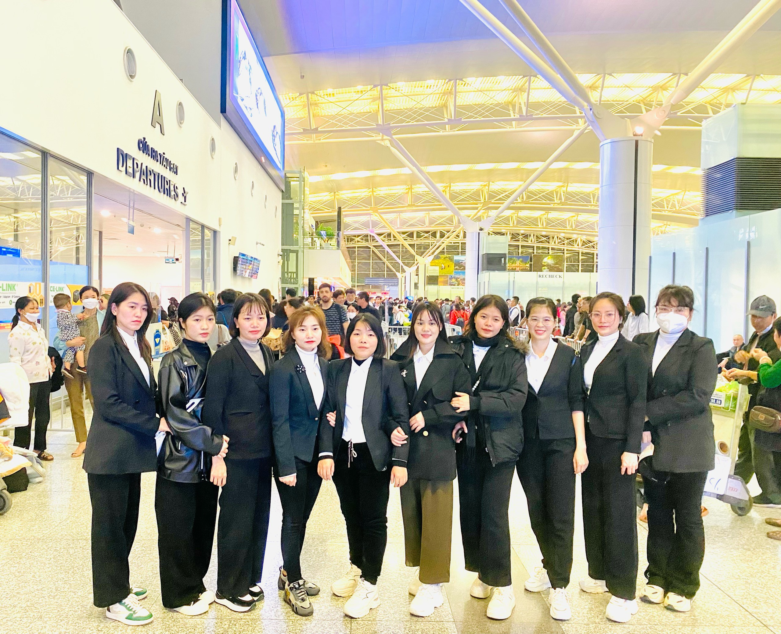 Tối 14.11 tại sân bay Nội Bài 11 cô gái xinh xắn TTS điều dưỡng Kaigo Việt Nam xuất cảnh sang Nhật Bản làm việc.